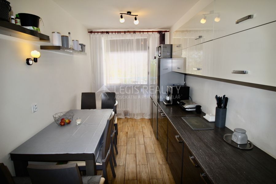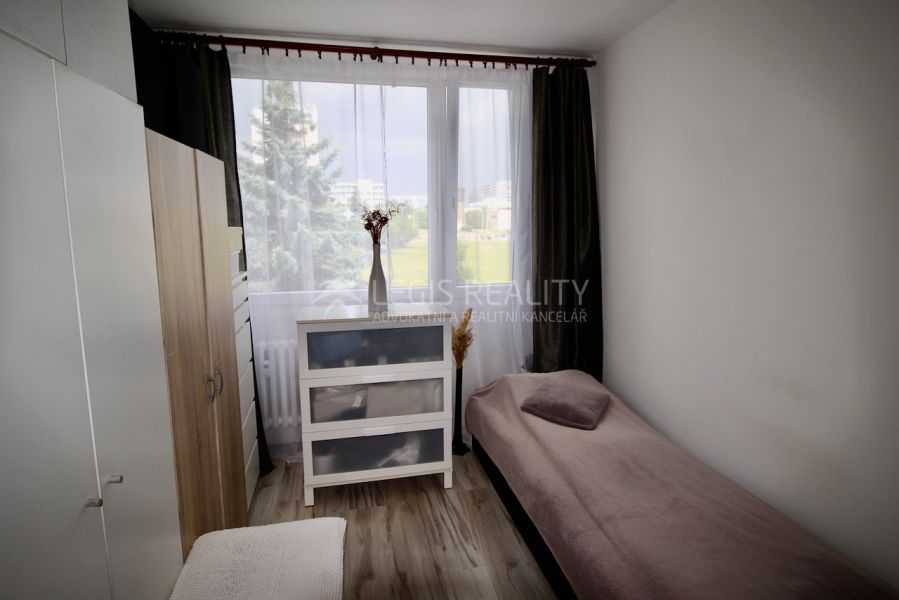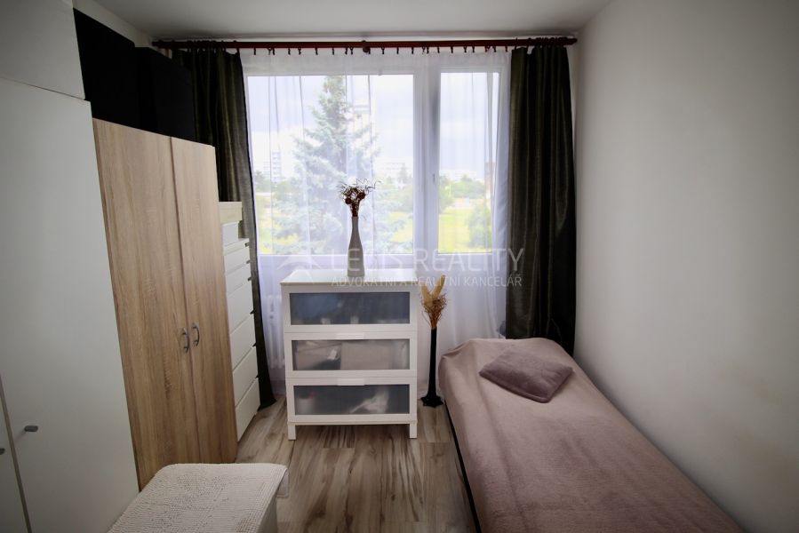 Exkluzivně nabízíme byt 3 + 1 s balkonem a sklepem ve výborném stavu po rekonstrukci ve třetím patře panelového domu s výtahem pouhých 200 metrů od stanice metra Háje. Byt má dvě prostorné ložnice, obývací pokoj se vstupem na balkon, kuchyň, chodbu, koupelnu a samostatnou toaletu. Rozšířením původní komory byla v centrální části bytu vytvořena nová obytná místnost, takže dispozice je ve skutečnosti 4 + 1. Dům stojí v klidné ulici uprostřed zeleně. V těsné blízkosti se navíc nachází Milíčovský les, který nabízí možnost relaxace v přírodě a zajišťuje zdravé životní prostředí v dané lokalitě. Byt je v osobním vlastnictví, hypotéka lze.